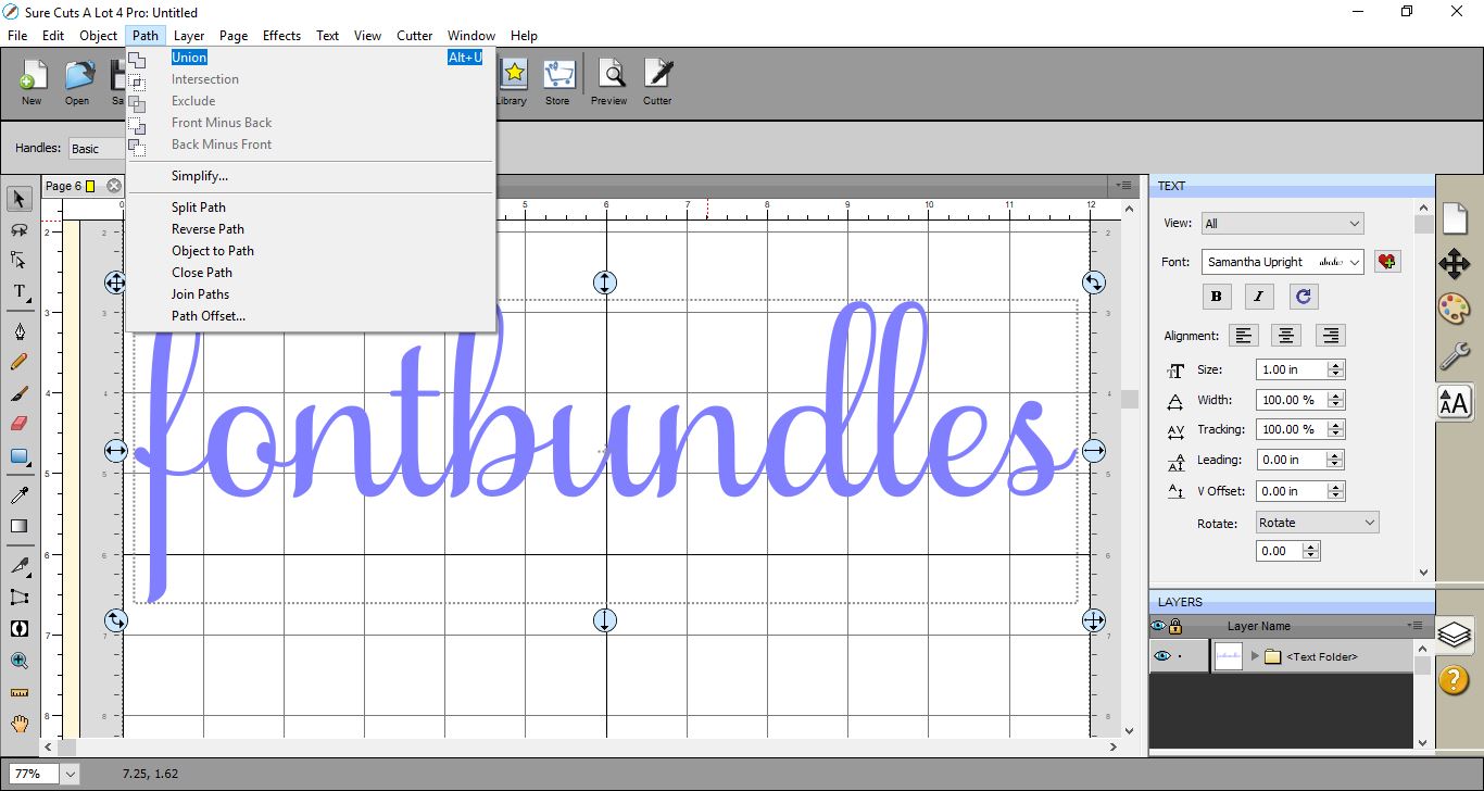 *Note - Sure Cuts a Lot 4 Pro used.1- Open SCAL4 software.2- The text tool on the left toolbar gives you 4 different options.Standard text toolVertical text toolType on path toolType on archThese 4 options can be accessed by clicking on the text tool with your mouse and holding it. ...