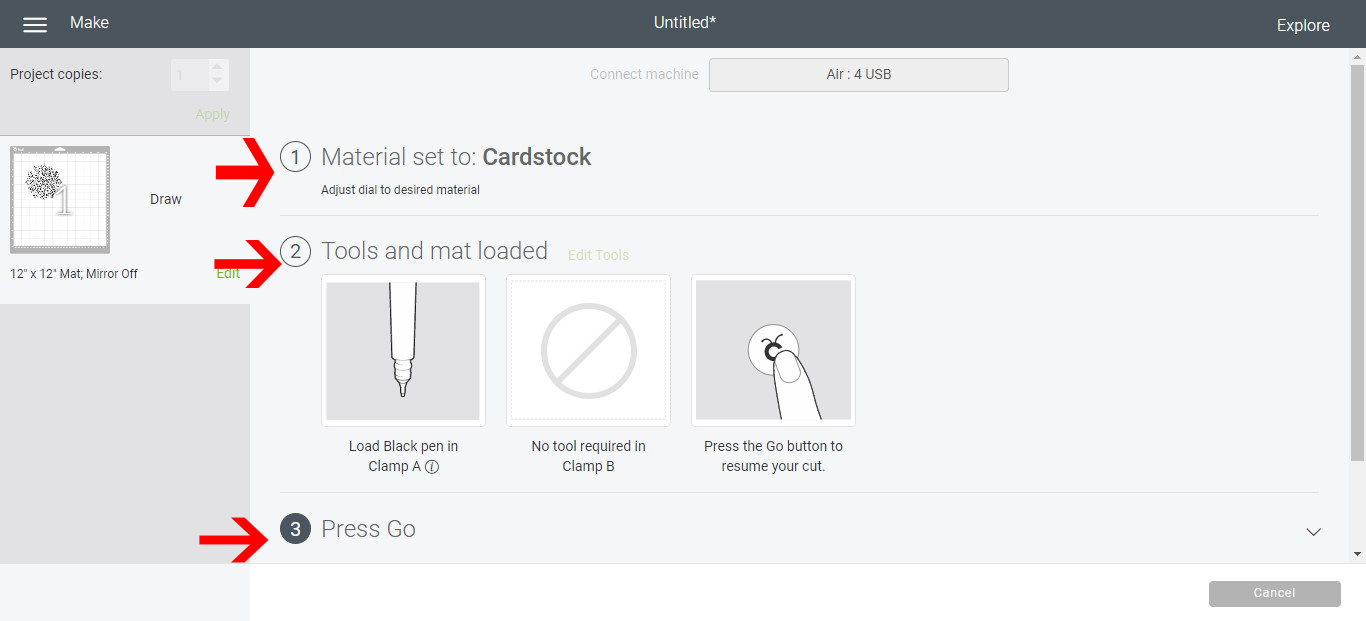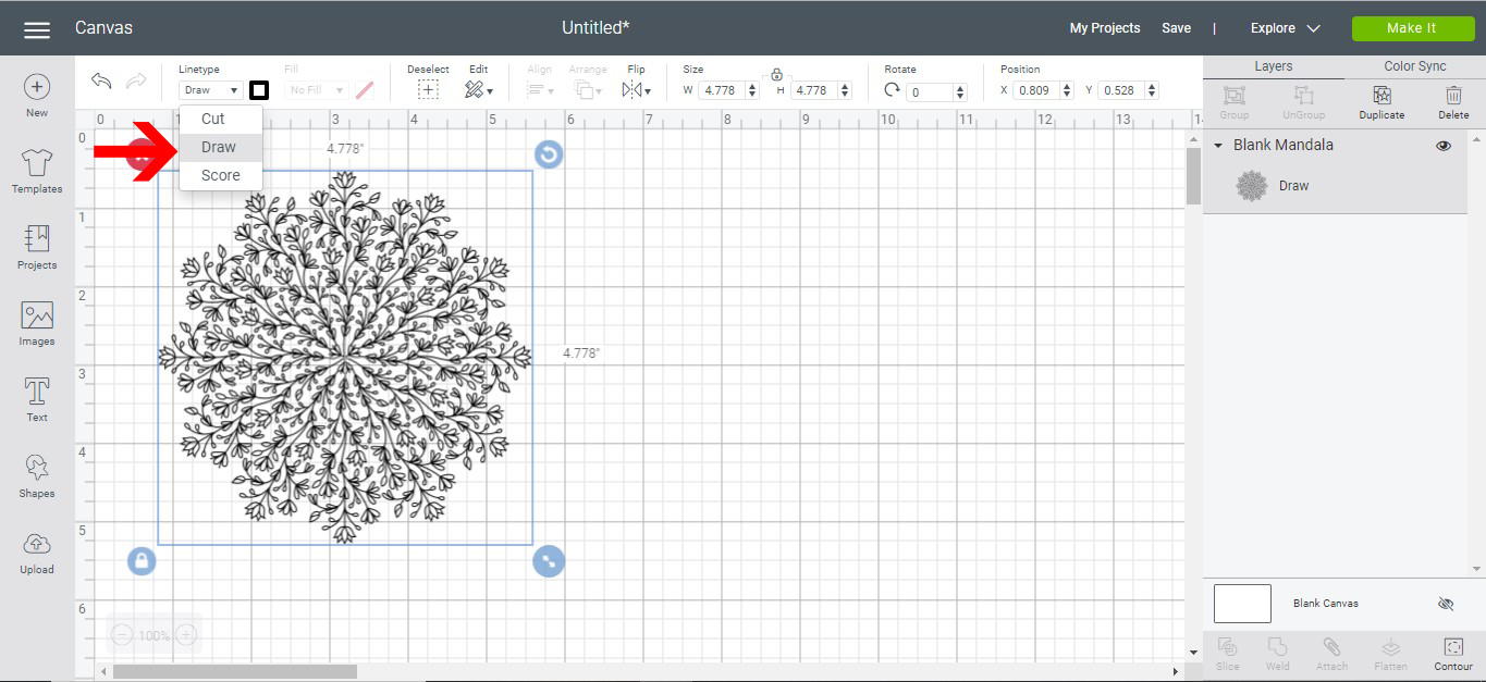 *Cricut expression air 2 machine used.1- Open design space. Click on new project.2- Click on shapes and select the score line tool.3- With the score line selected, go to the type drop down box and select draw.4- your line will now change to a draw line. you ...