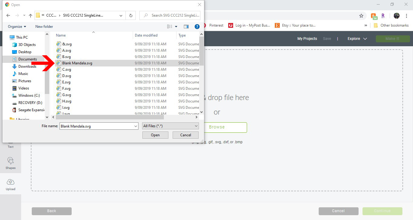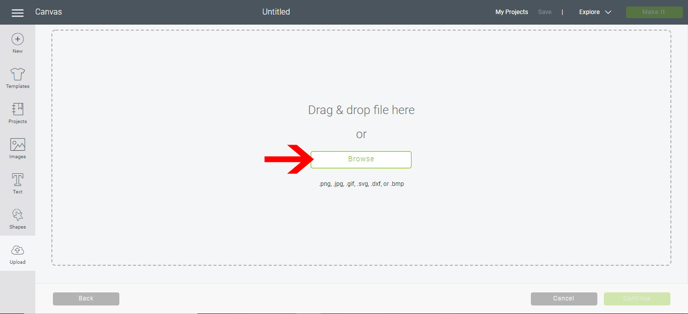 1- Open cricut design space. Click on new project.2- Click on the upload icon.3- Click on the upload icon.4- Click on browse.5- Select your SVG file. I am using a file from the Valentine's Day SVG Bundle by Craft House SVG.6- With SVG files they ...
