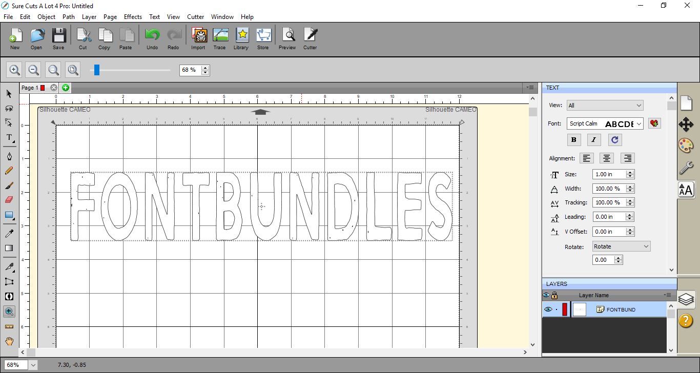 *Note- SCAL4 pro used.1- Open SCAL4 software.Type your text in the font you would like to use.3- Resize your text.4- Right click on your text and ungroup.5- Select all of your text apart from the first and last letter. Next got to Effects > Bulge.6...