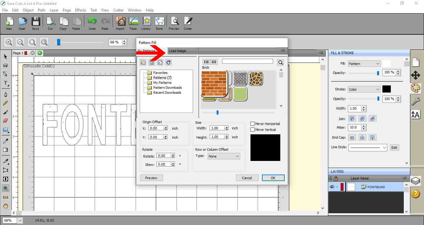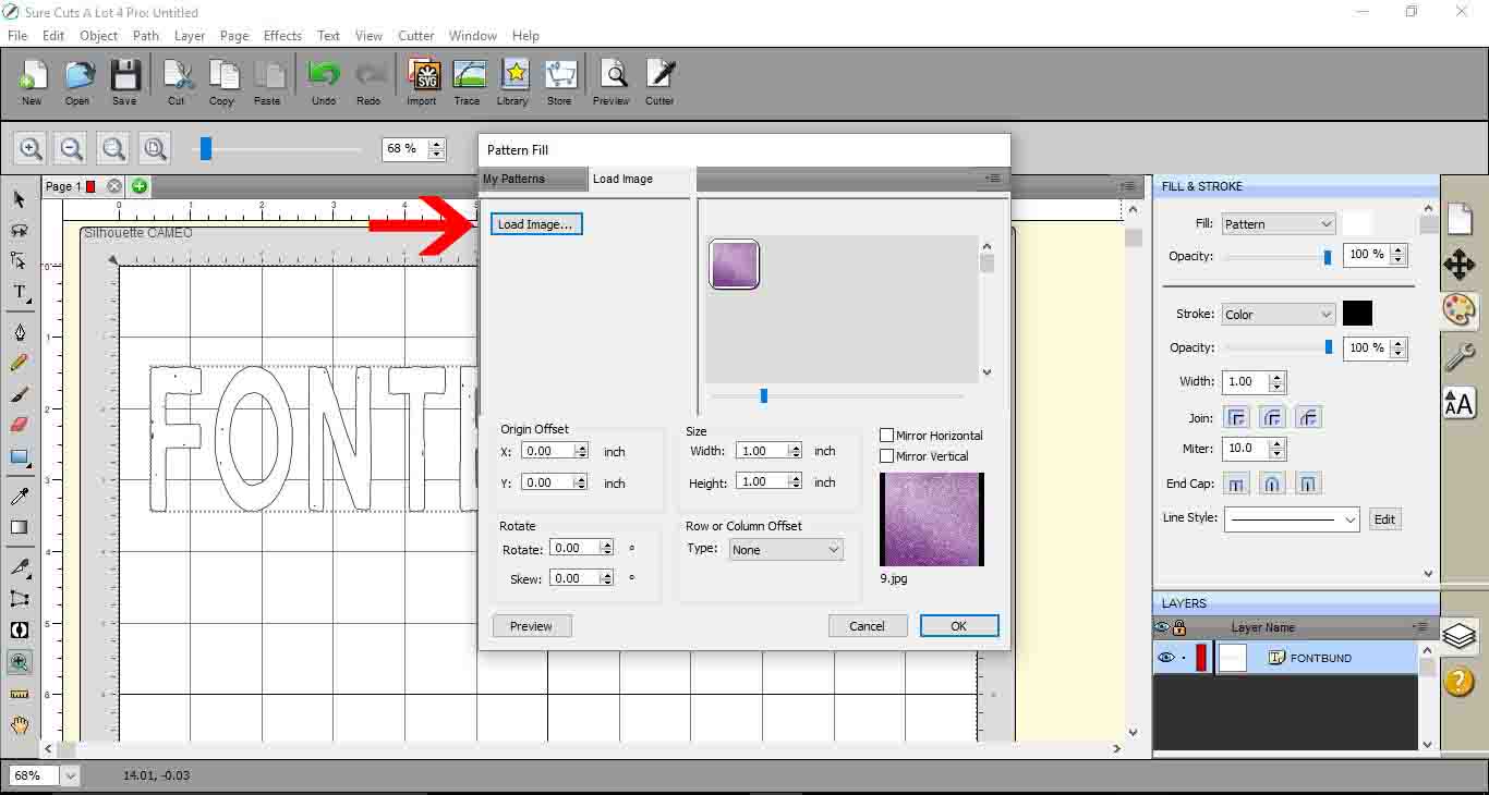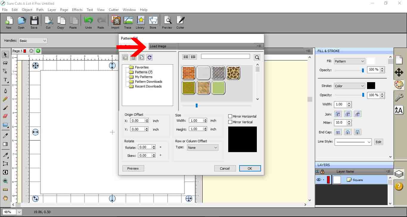 17- You fill pattern window will appear. click on load image.