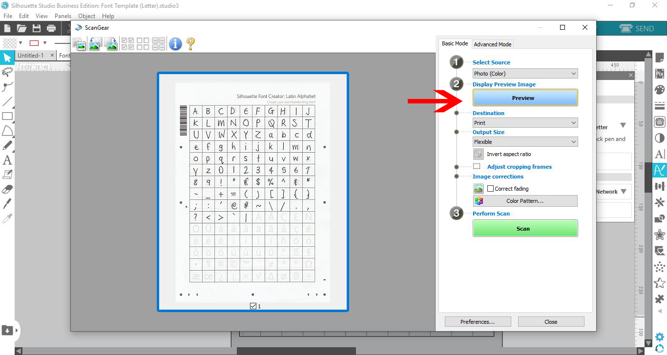 Back in Silhouette Studio, under the Font Creator panel, click on the Scan icon. If you are taking a photo you can use the Photo option. You will also be able to calibrate your camera with this option if needed.