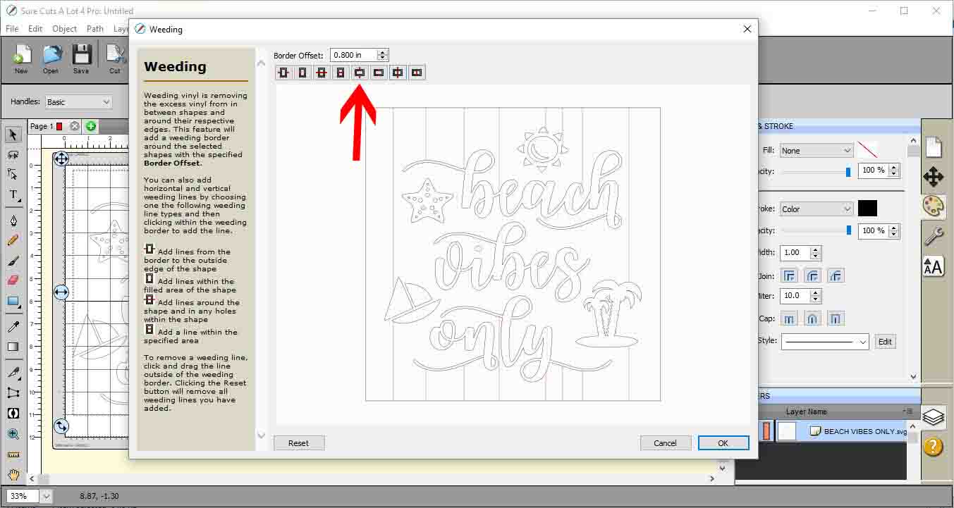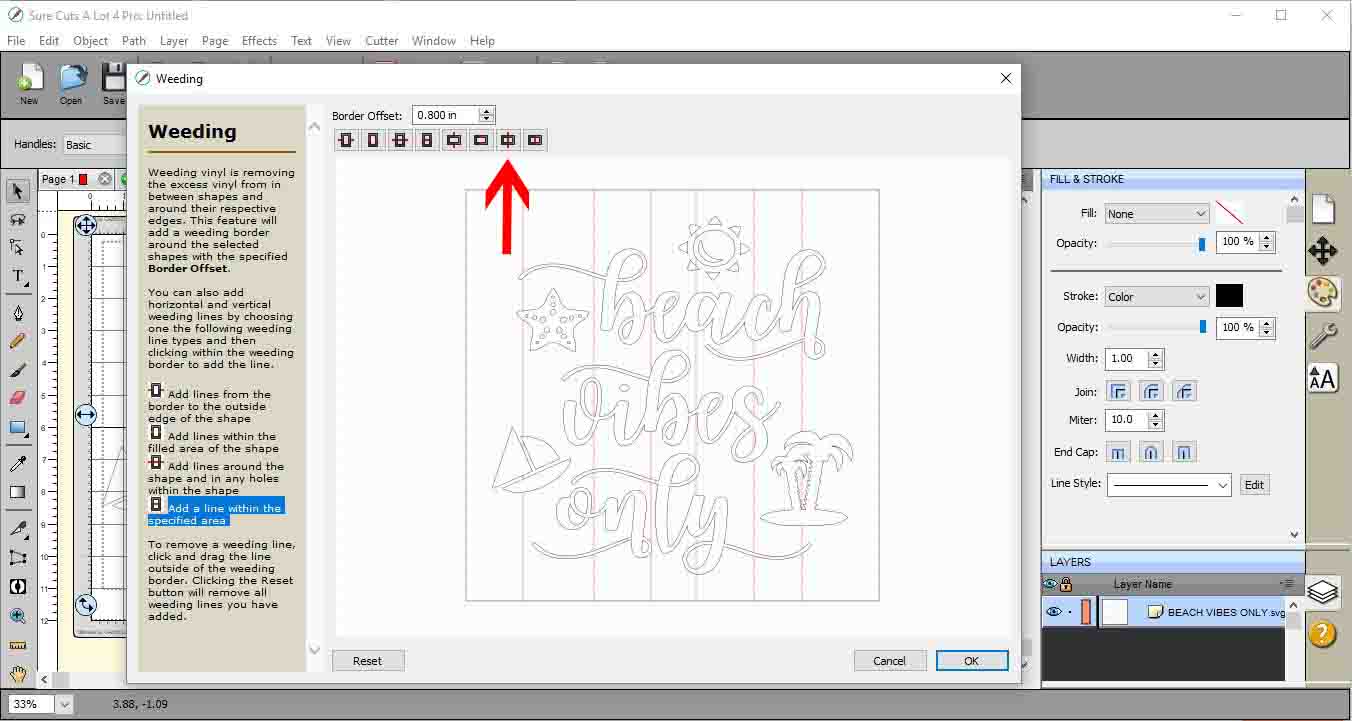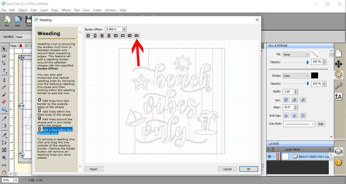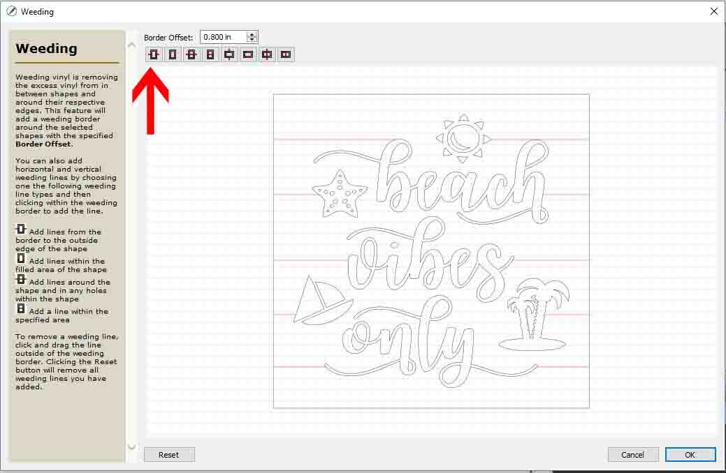 13- The next vertical option will add lines around the shape and in any holes within the shape. This is the traditional type of weeding lines that people tend to use.