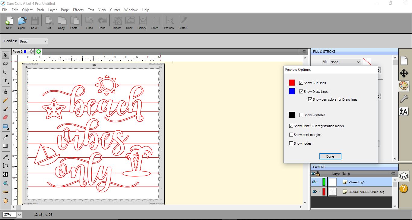 16- If you go to preview you can see clearly the weed lines and where they are in line with your design.