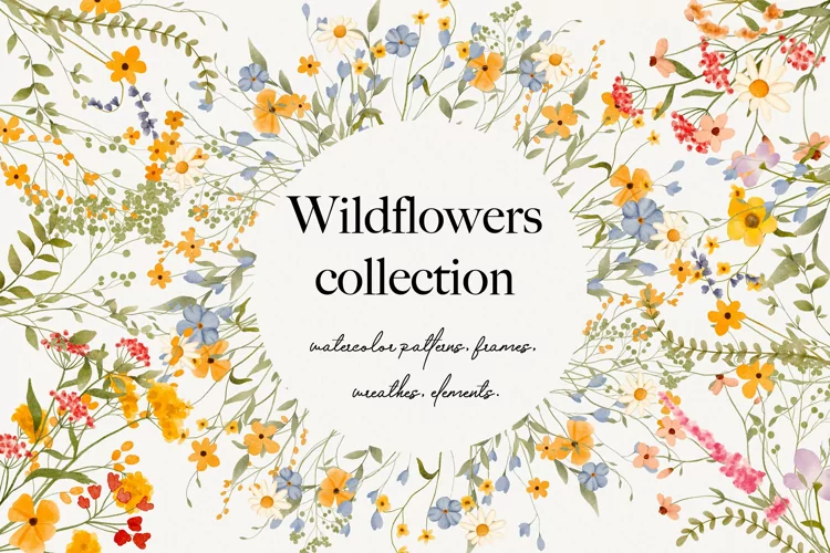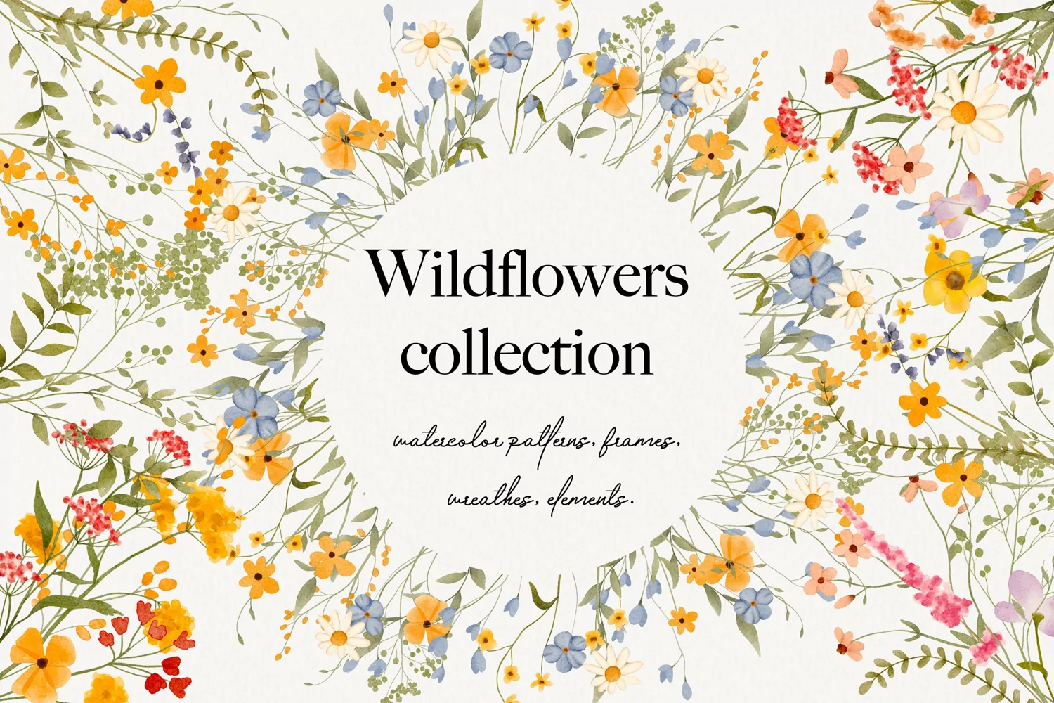Meadow Flowers Collection. Hand painted with love elements can perfectly complement your project and help create a sophisticated, restrained and fashionable style.