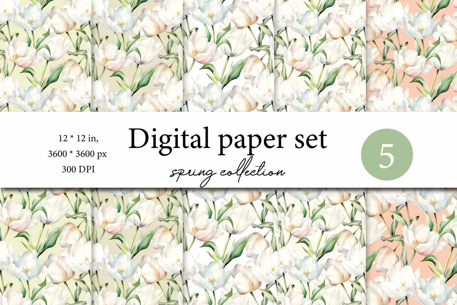 Digital Paper Spring Flowers Watercolor Flowers Watercolor Tulip Blooming Flowers Tulip Paper Set Floral Tulip Pattern Botanical Themed Tulip Wallpaper Tulip Paper Pack