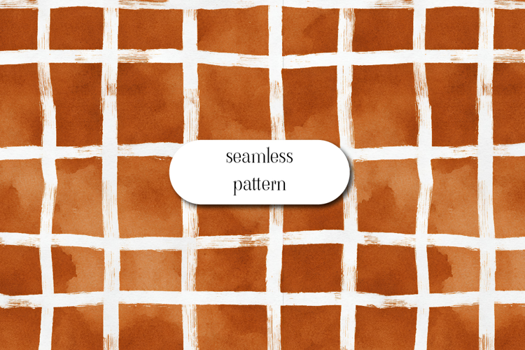 This seamless grid pattern features warm terracotta tones with white hand-drawn brush lines, creating a rustic and organic feel. Perfect for fabric design, digital paper, wallpaper, wrapping paper, stationery, and craft projects. The watercolor texture adds a cozy, natural charm ideal for autumn, boho, and minimalist collections.