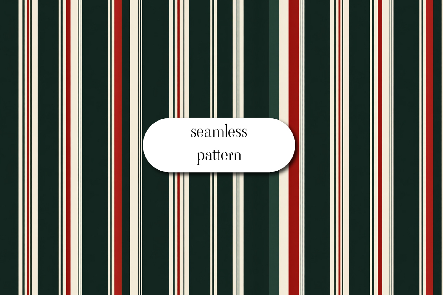 This seamless vertical stripe pattern combines deep green, festive red, and soft cream tones for a timeless, elegant look. Ideal for Christmas designs, gift wrap, textiles, and digital backgrounds. The balanced color palette brings warmth and sophistication, making it perfect for seasonal decor, stationery, and vintage-inspired projects. High-quality JPG for print and digital use.
