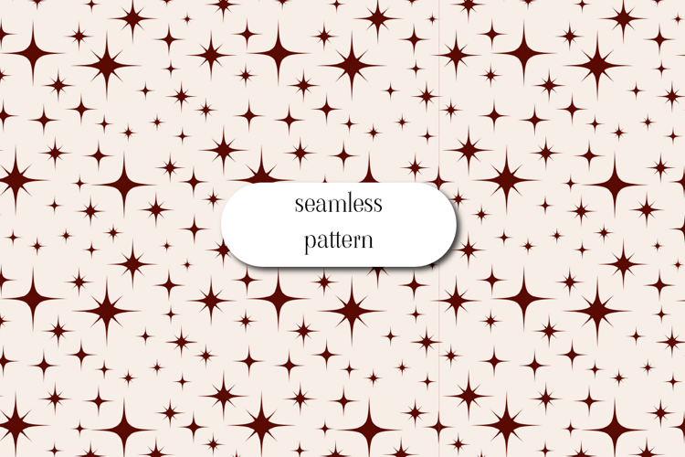 This seamless pattern features a retro-inspired starburst design in rich brown tones scattered across a soft cream background. The playful mid-century modern aesthetic makes it perfect for fabric printing, wallpaper, wrapping paper, digital scrapbooking, and craft projects. Its clean, stylish layout adds a vintage yet timeless decorative touch to any creative work.