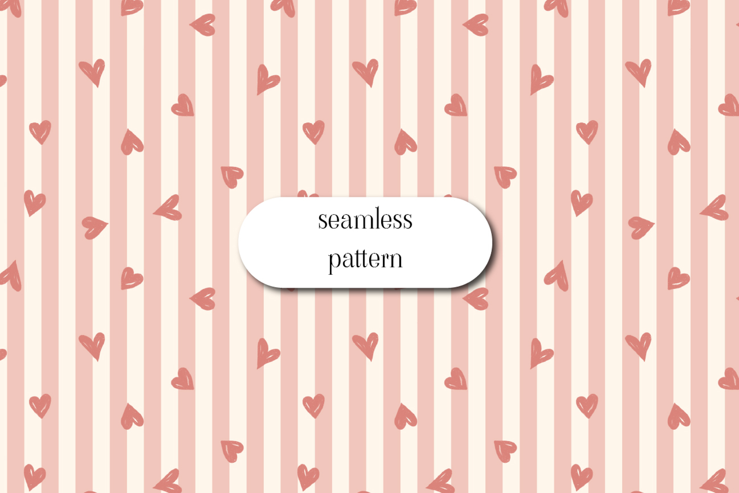 Cute Pink Heart Stripes Seamless Pattern Design example image 1