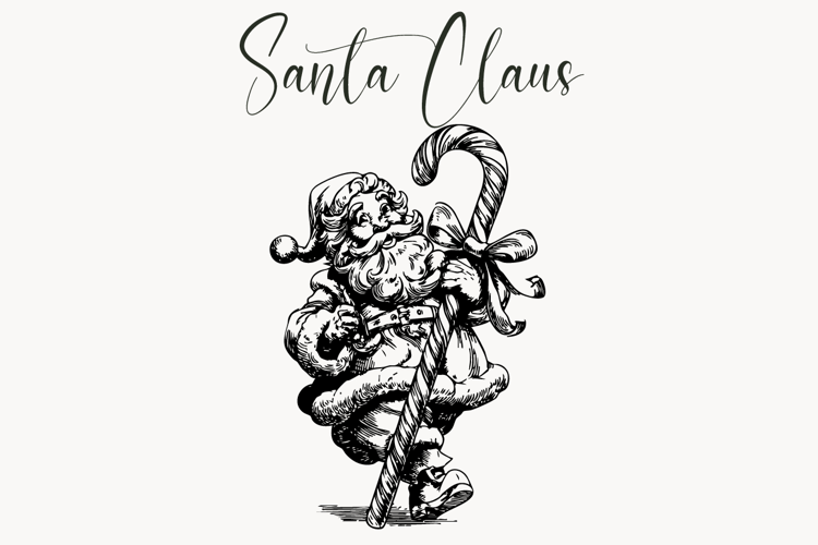 This beautifully detailed vintage Santa Claus illustration features classic hand-drawn line art, complete with a festive candy cane and oversized bow. Perfect for Christmas cards, holiday décor, invitations, mugs, stickers, shirts, and cozy seasonal designs.