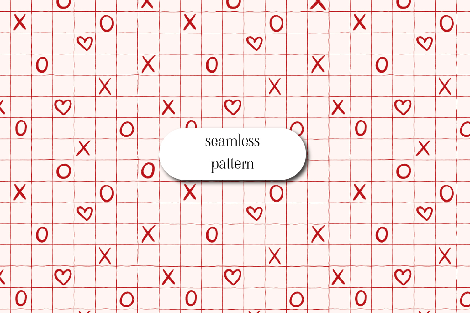 Valentine XO Seamless Pattern, Red Heart Grid Digital Paper example image 1