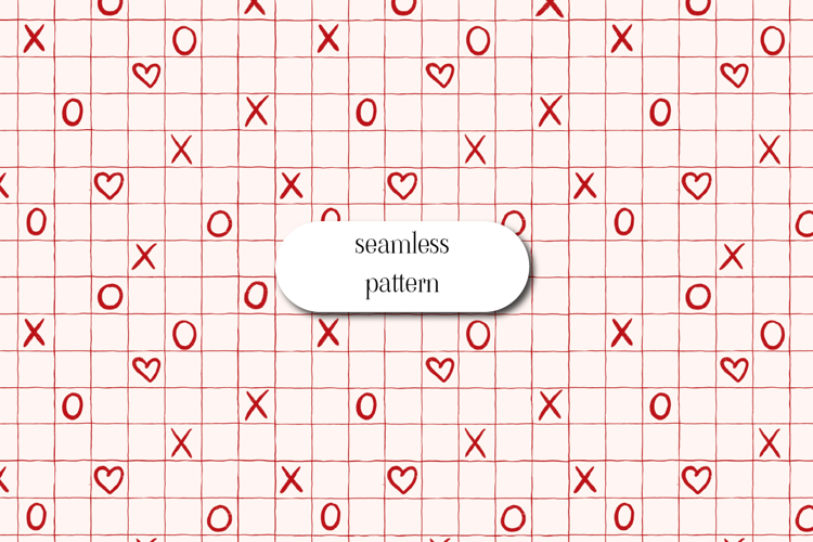 This cute Valentine seamless pattern features hand-drawn XO letters and hearts arranged on a red grid background. Perfect for romantic projects, kids designs, and playful love-themed creations. Ideal for digital paper, scrapbooking, fabric prints, gift wrap, stationery, stickers, and surface pattern design.