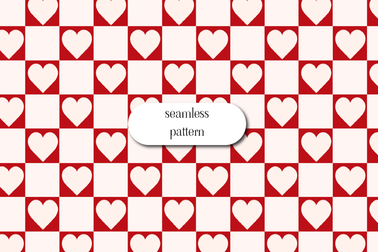 Red Checker Heart Seamless Valentine Love Pattern example image 1