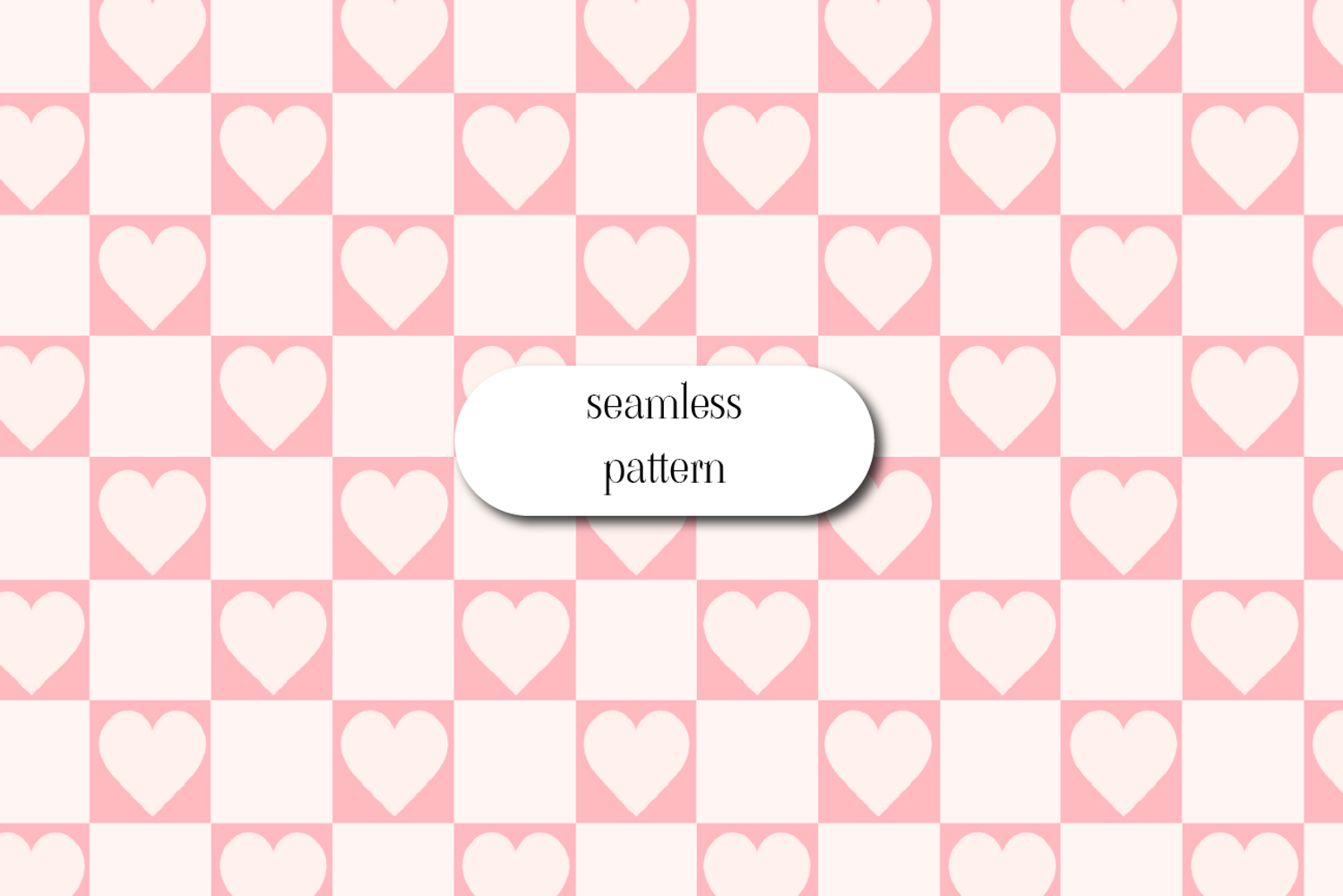 Soft Pink Heart Checkerboard Seamless Valentine Pattern example image 1