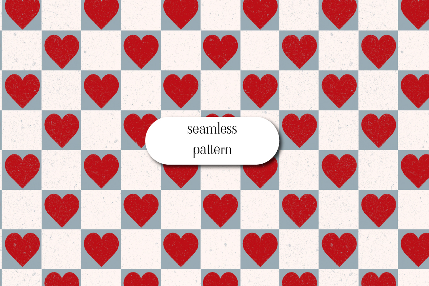 Valentine Heart Checker Seamless Pattern Red Blue example image 1