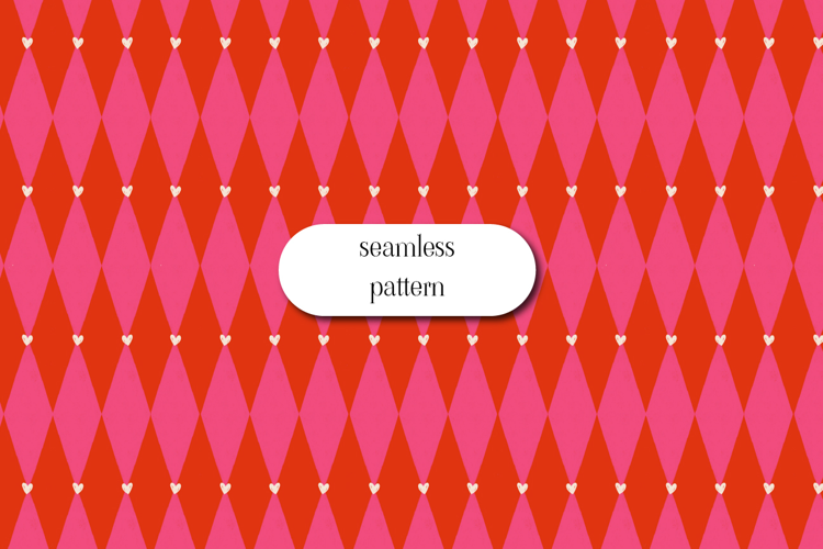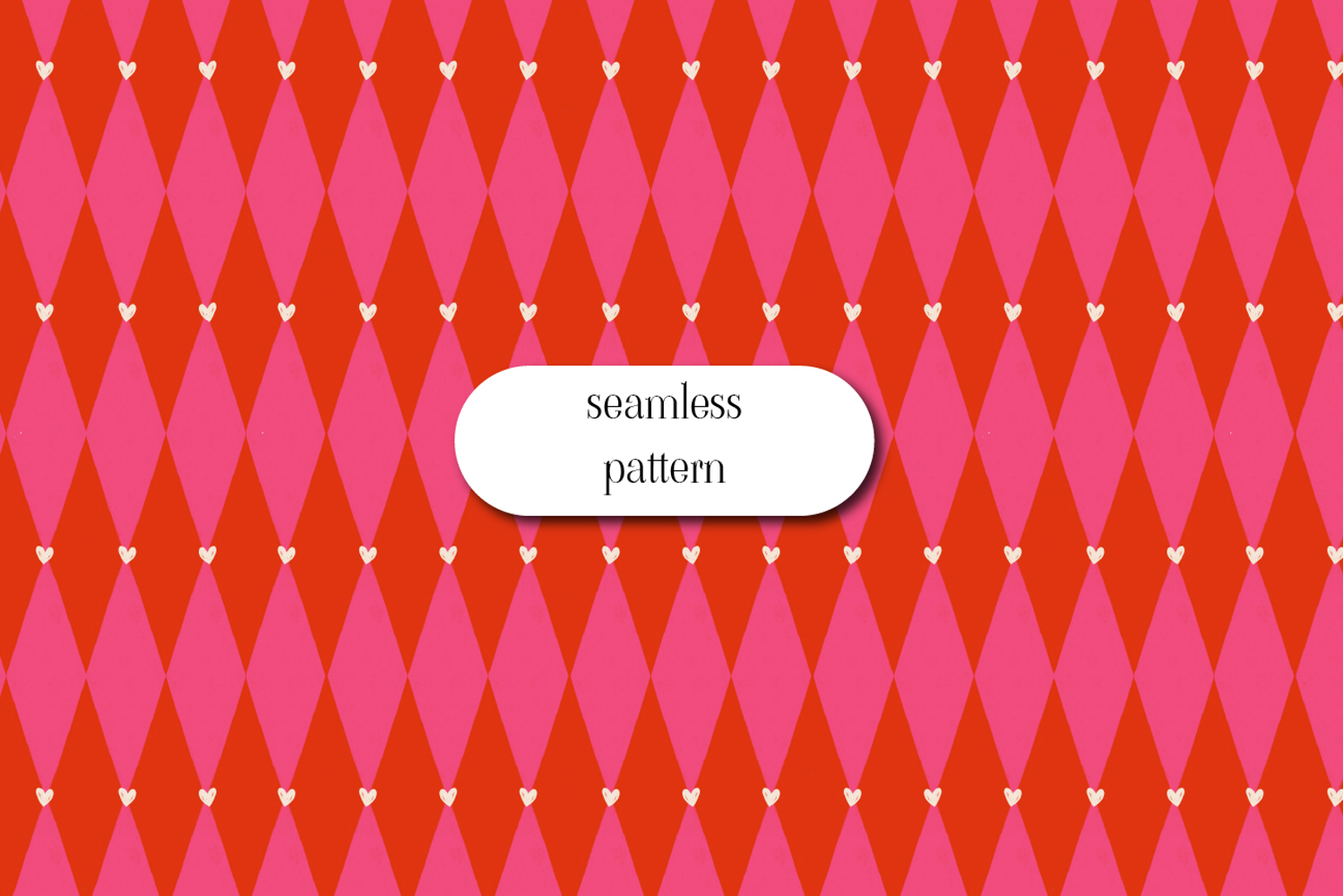 Pink and Red Harlequin Heart Seamless Valentine Pattern example image 1