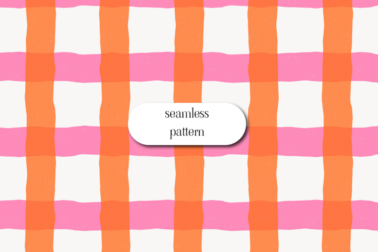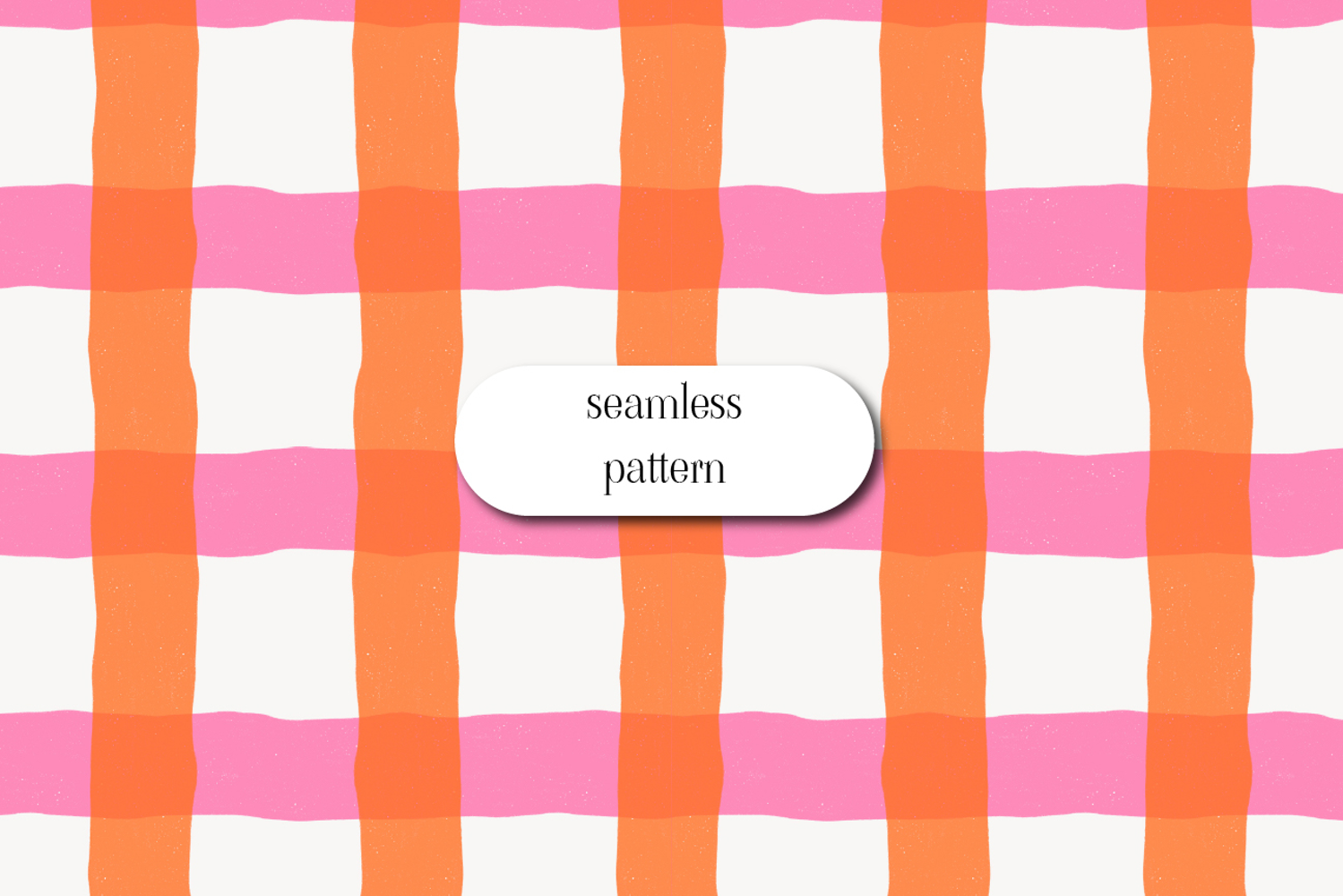 Pink Orange Gingham Seamless Pattern Hand Painted Checks example image 1