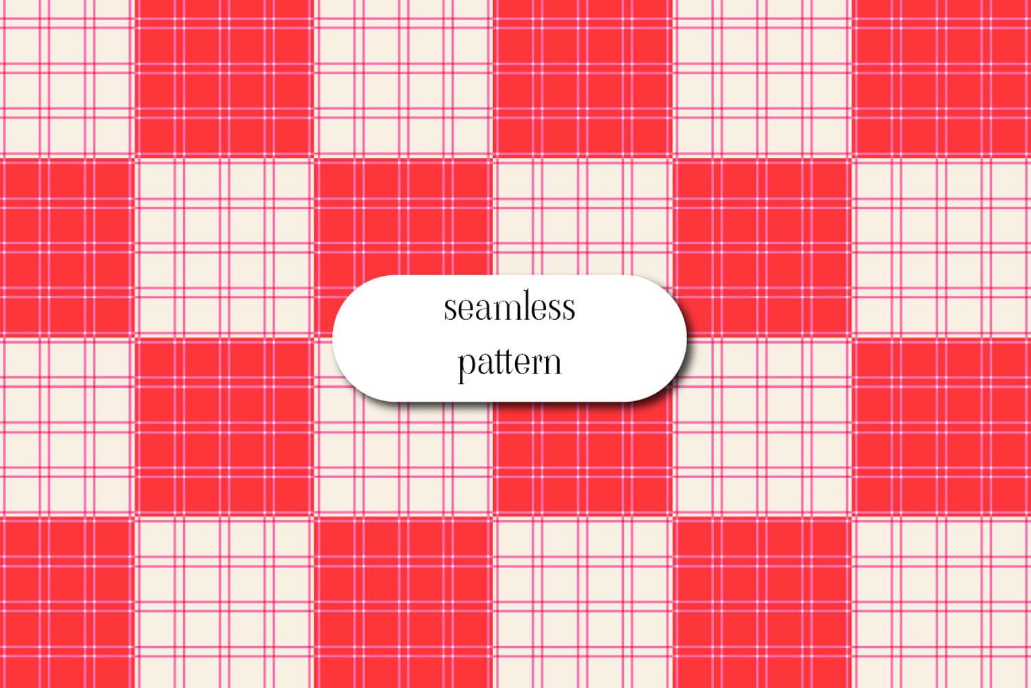 This seamless plaid pattern features bold red and soft pink checks on a warm cream background, creating a classic yet playful Valentine-inspired design. The clean grid style works beautifully for both modern and traditional projects.