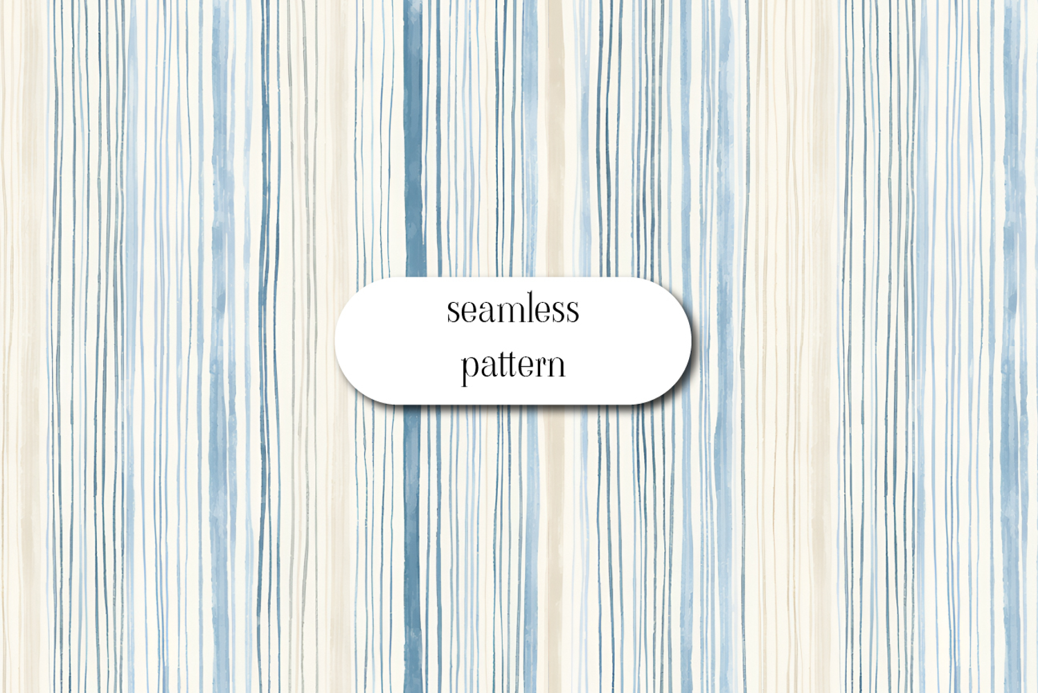 Seamless hand-painted vertical striped pattern in calming shades of soft blue, cream, and light beige. The organic watercolor brush lines create a fresh, airy, and coastal-inspired look. Perfect for fabric printing, wallpaper, nursery decor, wrapping paper, stationery, packaging, and modern surface design projects. Seamless repeat allows easy scaling and tiling.