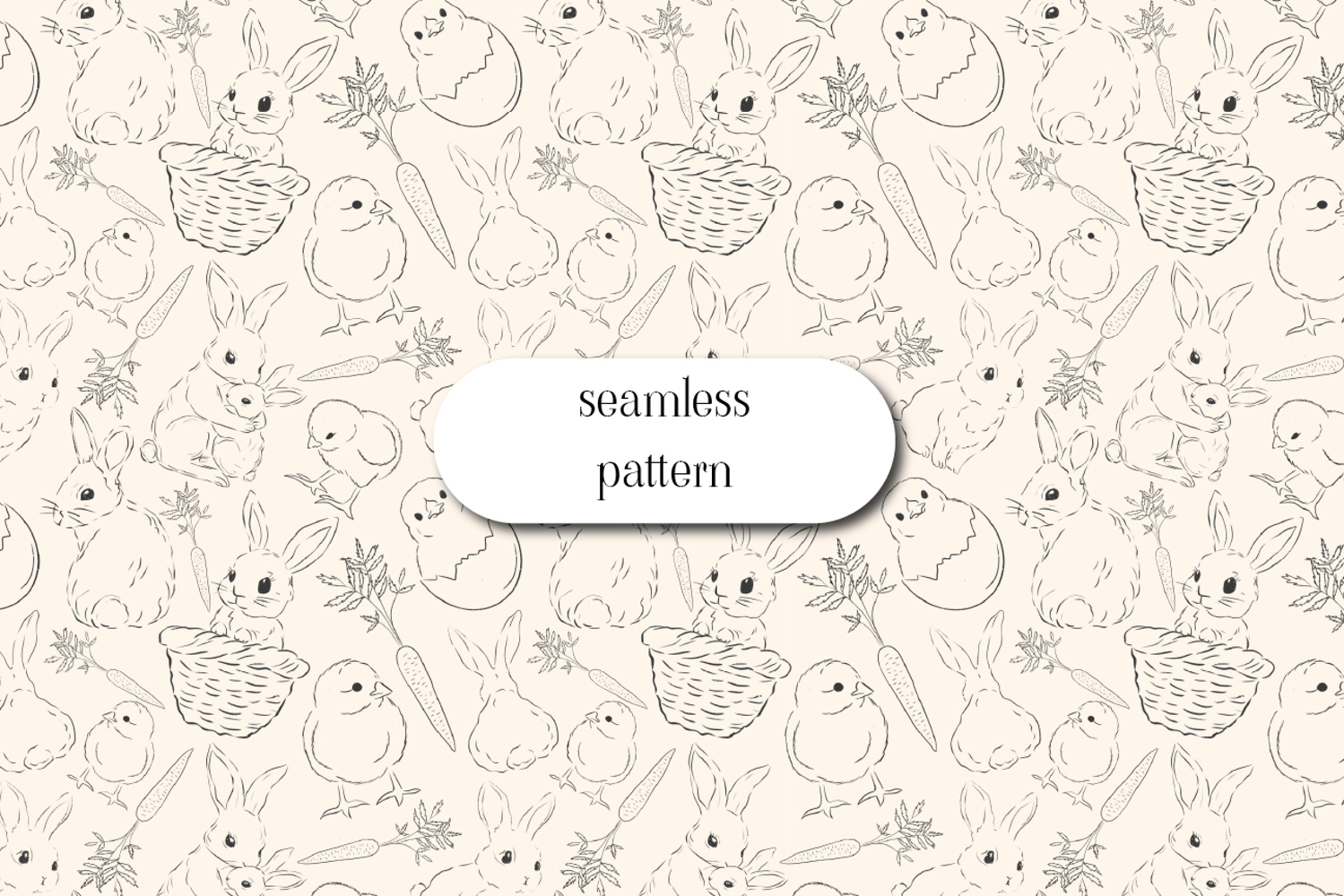 Easter Bunny Seamless Pattern, Hand Drawn Nursery Art example image 1