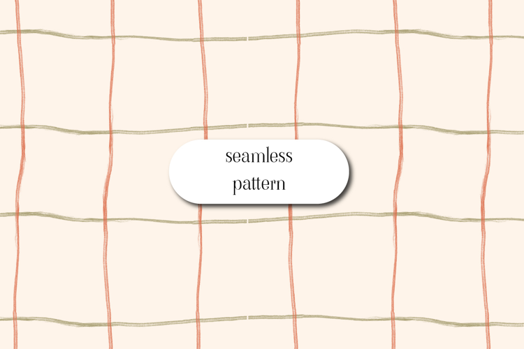 This seamless hand-drawn grid pattern features soft terracotta and sage lines on a warm cream background. The imperfect, organic check design adds a cozy modern feel, perfect for fabric printing, wallpaper, home decor, wrapping paper, stationery, scrapbooking, and digital projects. Ideal for minimalist, boho, Scandinavian, and cottage-inspired surface designs.