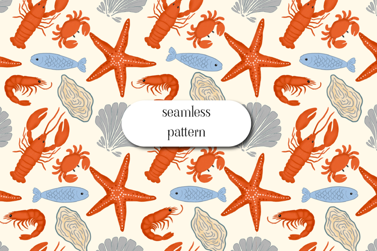 Coastal Seafood Seamless Pattern Ocean Summer Print example image 1