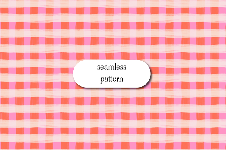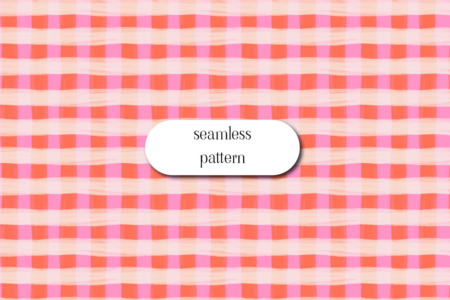 Pink Coral Gingham Seamless Brush Check Pattern example image 1