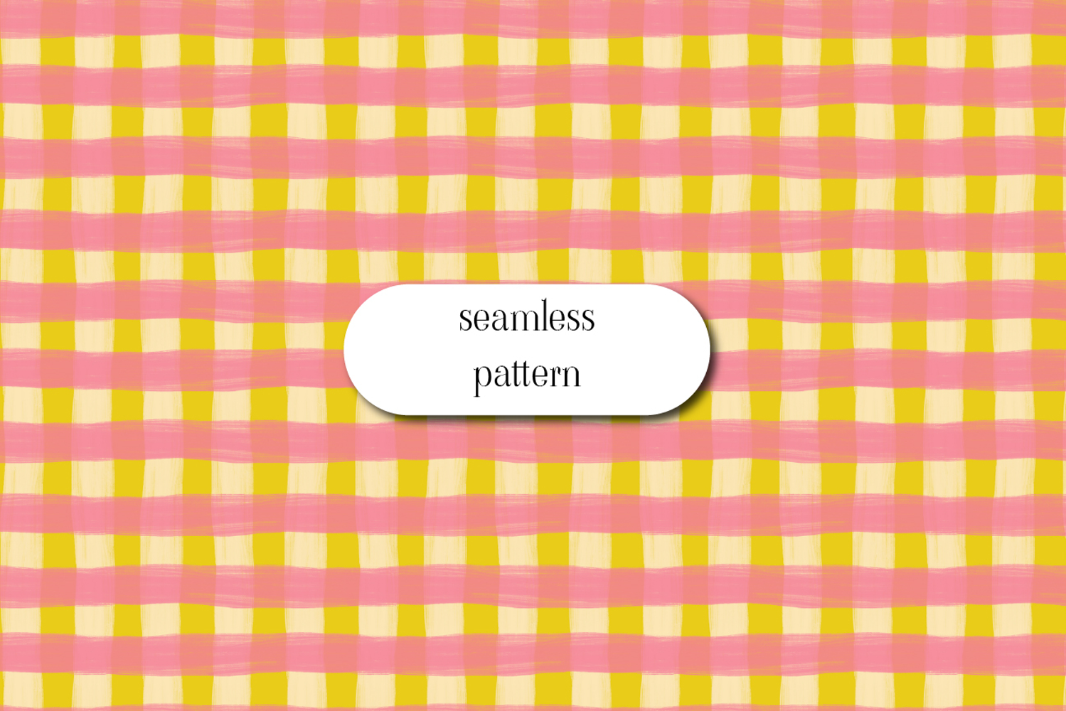 Pink Yellow Gingham Seamless Brush Stroke Pattern example image 1
