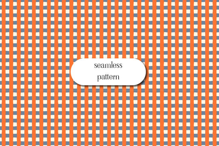 Bold and playful seamless stripe pattern featuring hand-painted vertical orange lines layered over soft blue and cream horizontal bands. This modern coastal-inspired design blends warm citrus tones with cool nautical hues, creating a fresh and eye-catching repeat.