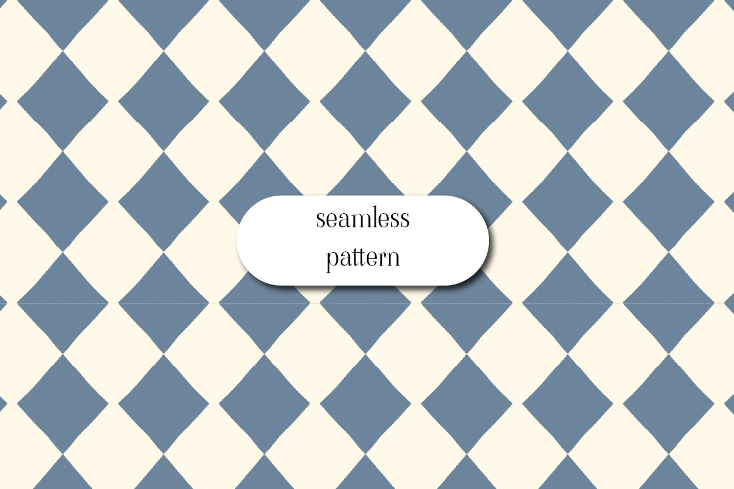 Classic seamless harlequin pattern featuring soft blue and cream diamond shapes in a timeless geometric layout. This elegant repeating design is perfect for wallpaper, fabric, wrapping paper, scrapbooking, branding, and digital backgrounds. A versatile print that suits coastal, vintage, nursery, and modern interior styles.