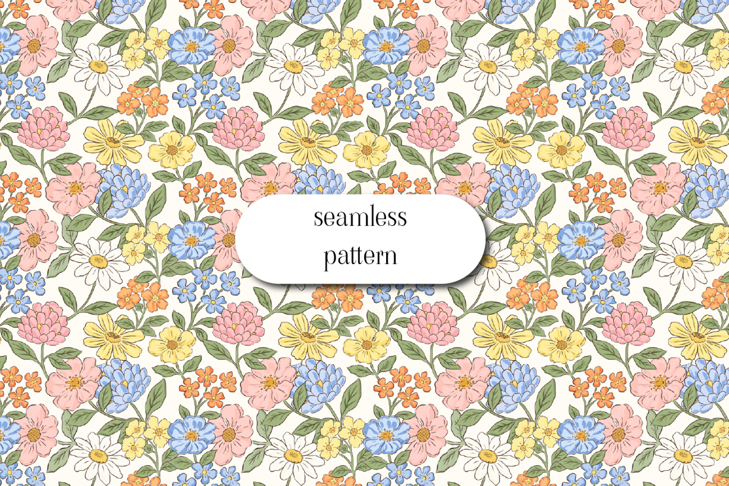 Vintage Wildflower Seamless Pattern, Pastel Floral Design example image 1