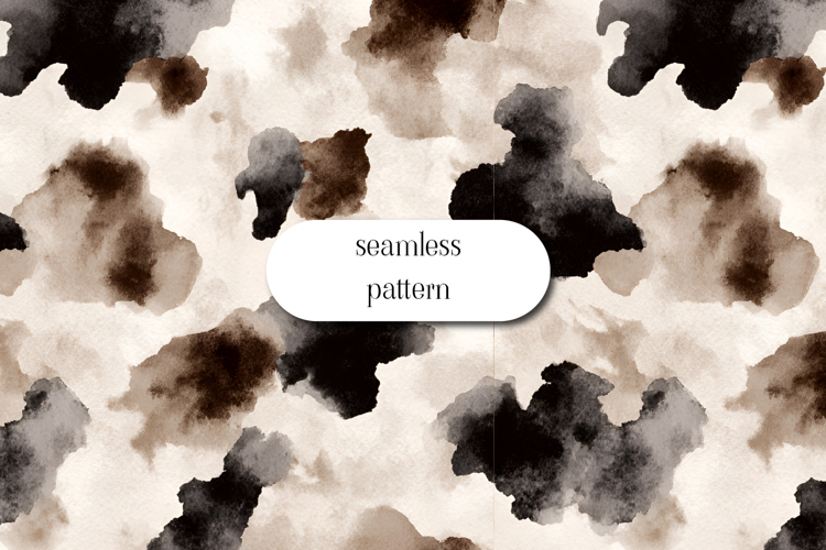 Modern seamless pattern featuring abstract watercolor blot shapes in neutral tones of beige, brown, and black. The organic, fluid textures create a soft yet bold artistic look, perfect for contemporary and minimalist designs.