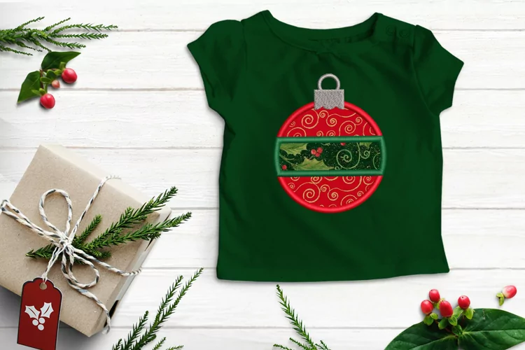 This festive applique design features a round Christmas ornament with a striped band around the center. Perfect for the holiday season!