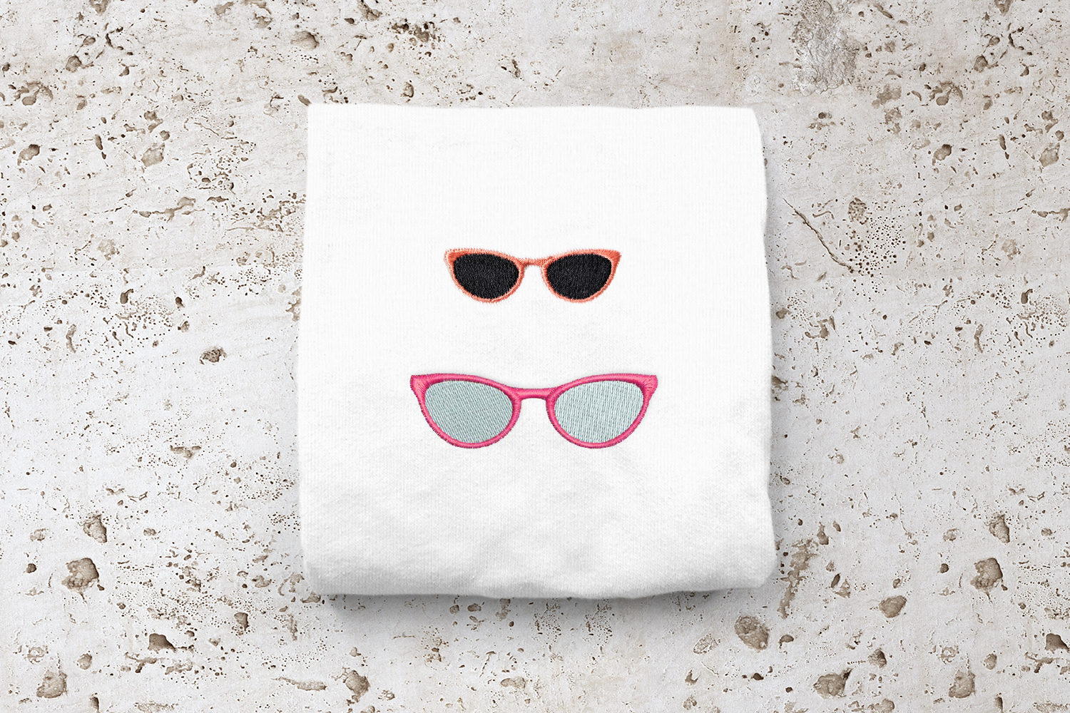 This embroidery design features a pair of vintage bookworm glasses. Make them sunglasses or reading glasses based on your choice of thread for the lens color.