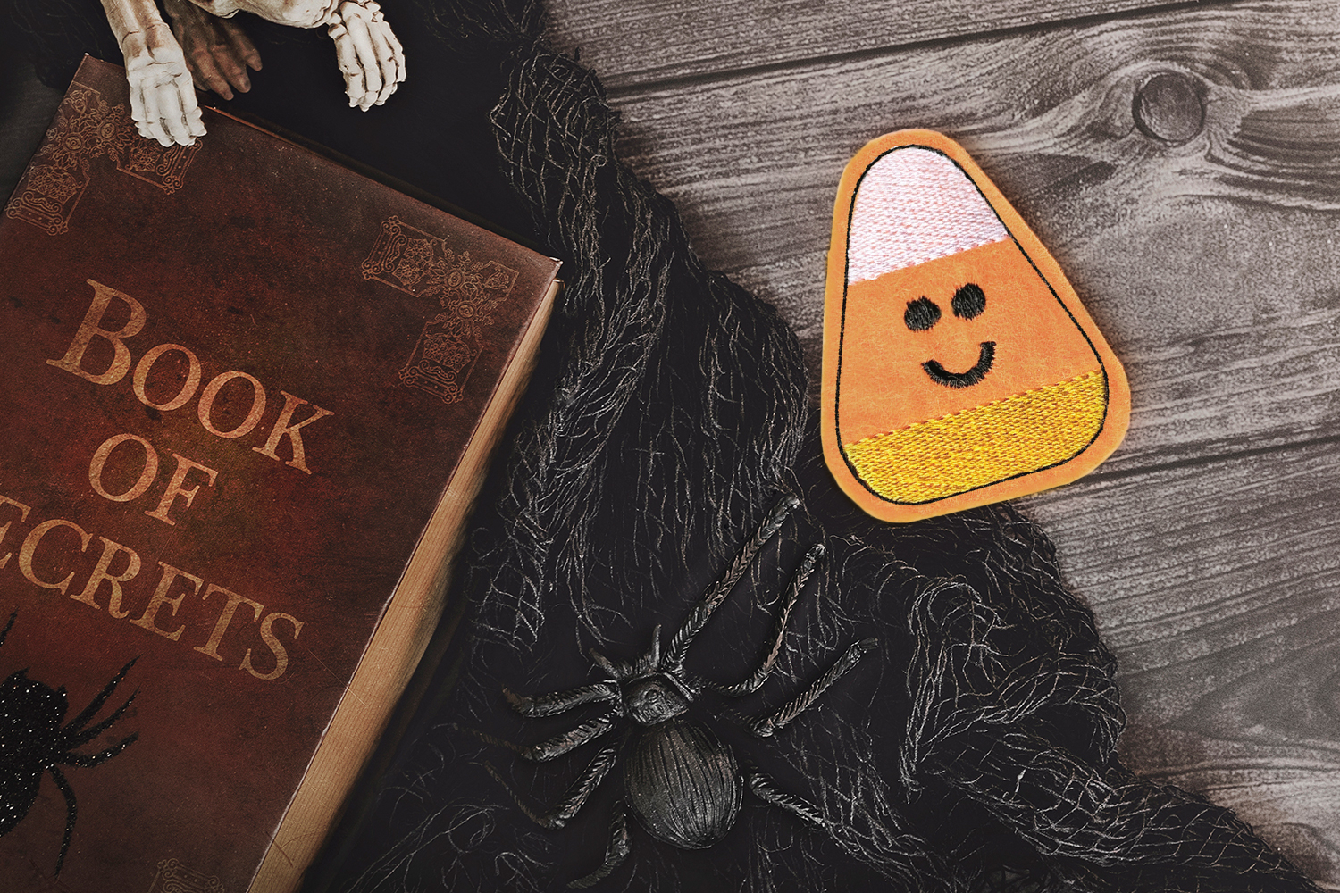 This fun in-the-hoop embroidery design features a smiling candy corn that you stitch onto felt, vinyl, or other durable non-fraying fabric. Includes feltie instructions.