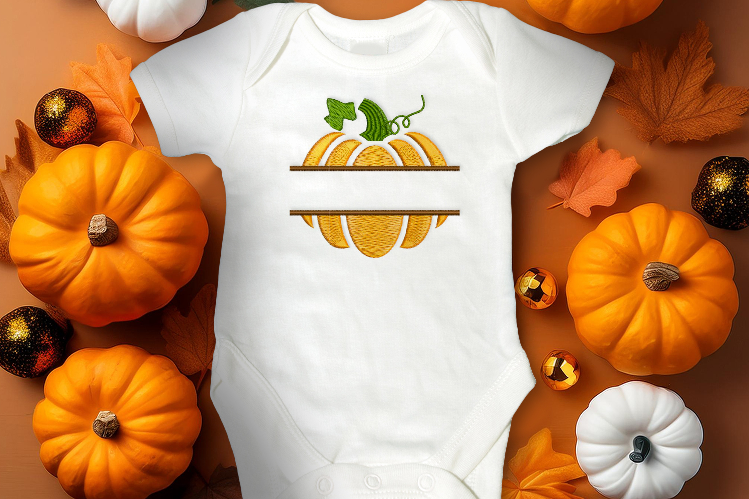 Bring on those cute and cozy fall vibes! This festive embroidery design features a pumpkin with split in the middle to add your own text. Great for celebrating autumn, Halloween, or Thanksgiving.