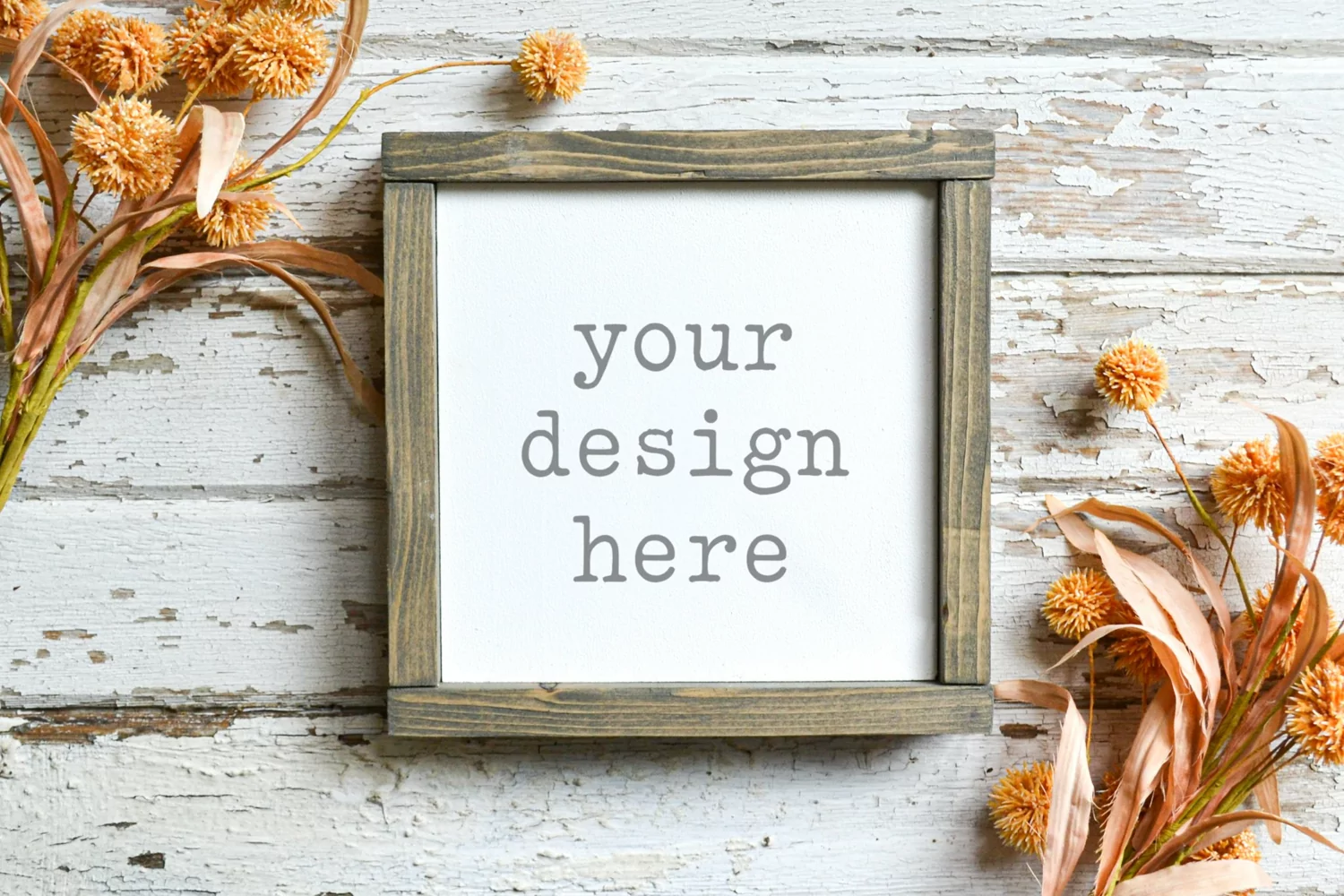Wood Sign 8x8 Autumn Fall Mockup| Add SVG Add Sublimation example image 1