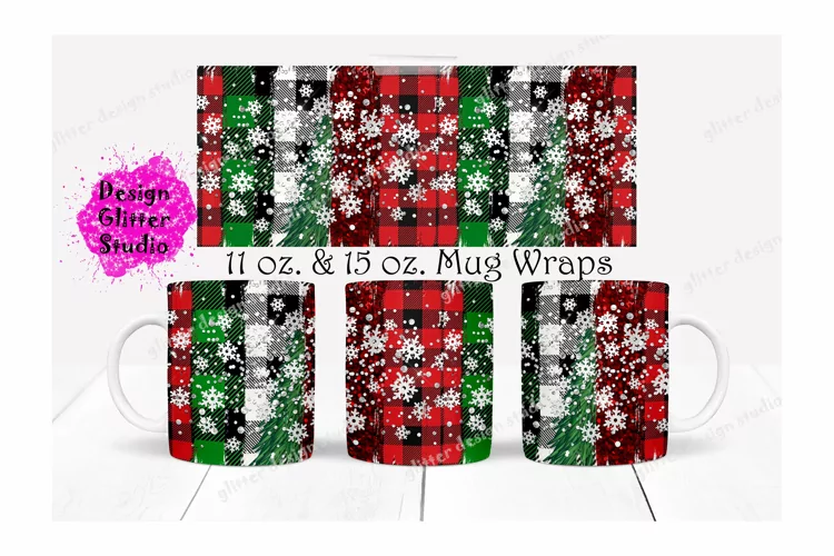 Christmas Mug Sublimation Template, Plaid mug PNG design