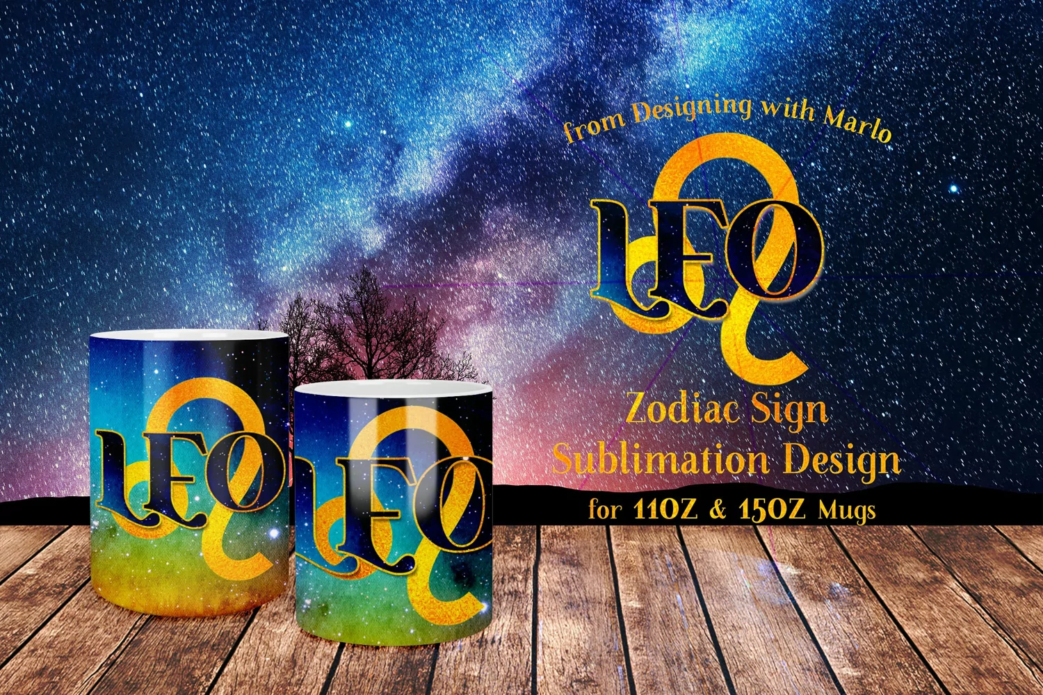 leo symbol and word on a colorful space themed background for an 11oz AND 15oz mug