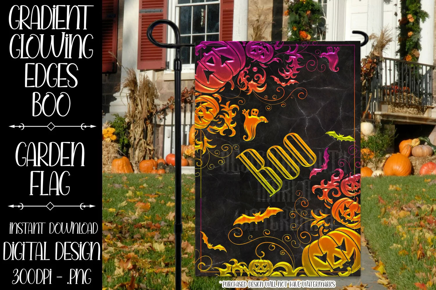 Halloween Glowing Gradient Boo Garden Flag Sublimation