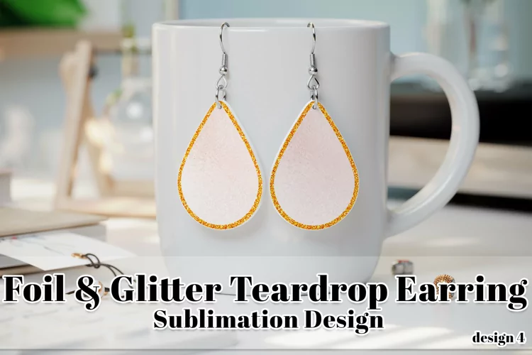 Foil Glitter Earring, Teardrop Earring Sublimation Design 4