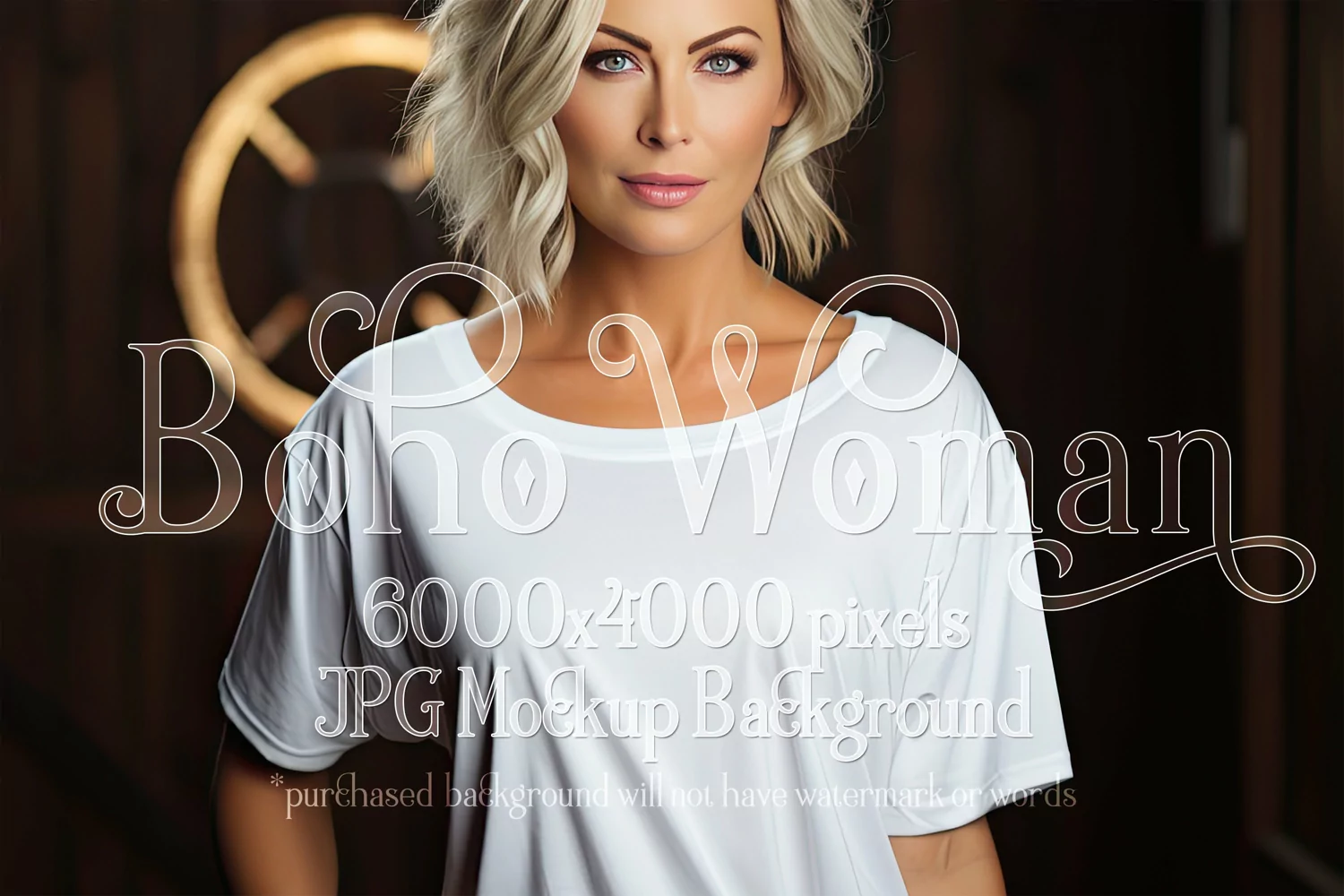 T Shirt Mockup, Older Woman Wearing White T-Shirt Photo, p8