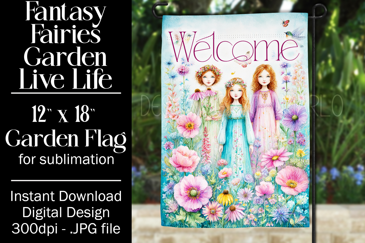 Fairy Garden Flag, Sublimation Fantasy Garden Flag Design 5b example image 1