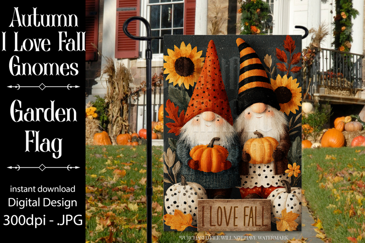 Gnome Garden Flag Design Autumn Garden Flag Autumn Gnome Sublimation Garden Flag Sublimation Autumn Gnome Garden Flag Fall Season Garden Flag I Love Fall Garden Flag