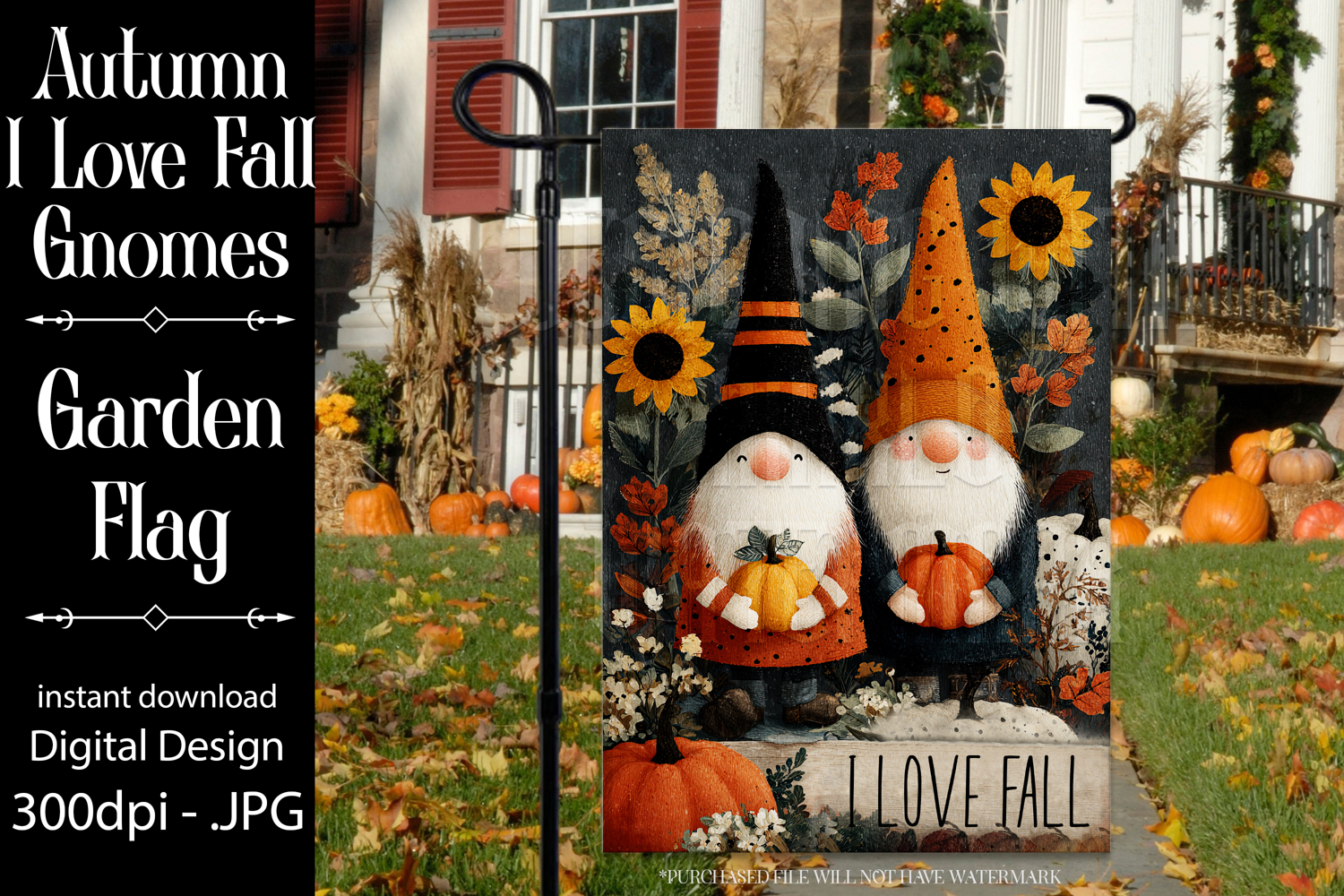 Gnome Garden Flag Design Autumn Garden Flag Autumn Gnome Sublimation Garden Flag Sublimation Autumn Gnome Garden Flag Fall Season Garden Flag I Love Fall Garden Flag