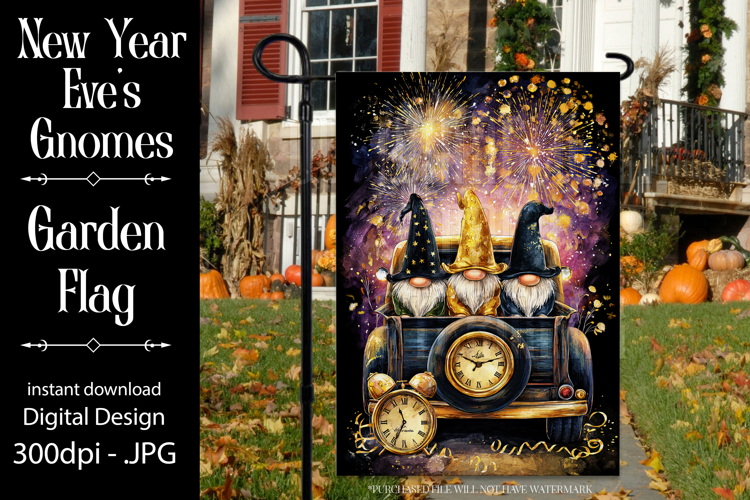 In this listing, you will find a unique new year's eve gnome digital background for a 12x18 garden flag. This flag design is perfect for sublimating on garden flag blanks. This design is sure to add a touch of gnome style to any garden.