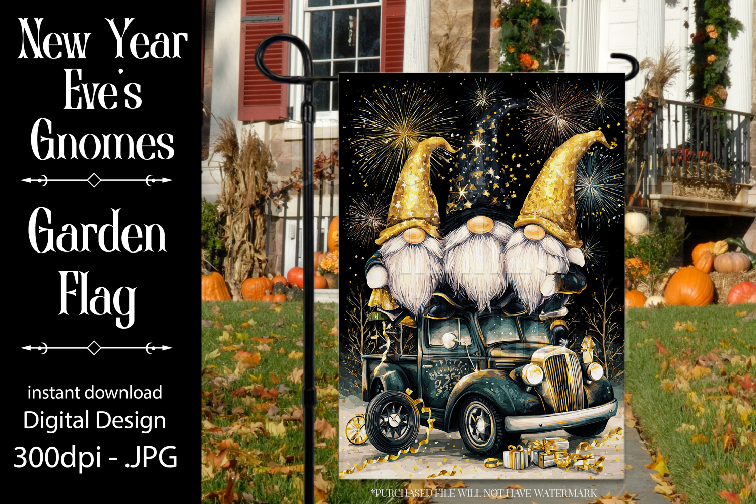 In this listing, you will find a unique new year's eve gnome digital background for a 12x18 garden flag. This flag design is perfect for sublimating on garden flag blanks. This design is sure to add a touch of gnome style to any garden.