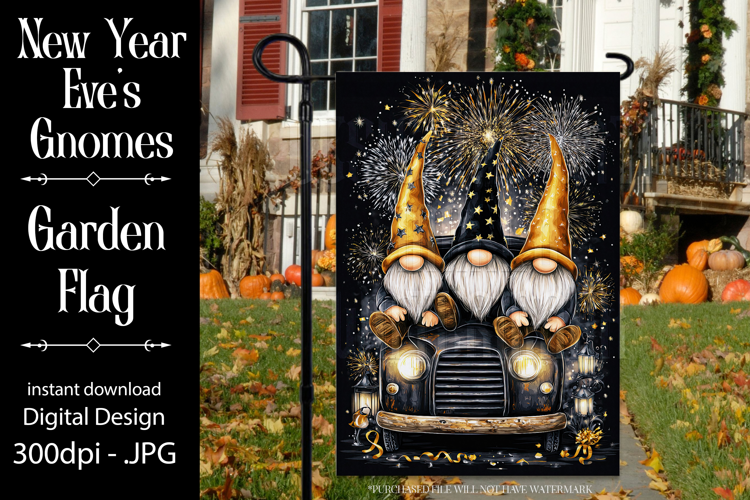 In this listing, you will find a unique new year's eve gnome digital background for a 12x18 garden flag. This flag design is perfect for sublimating on garden flag blanks. This design is sure to add a touch of gnome style to any garden.