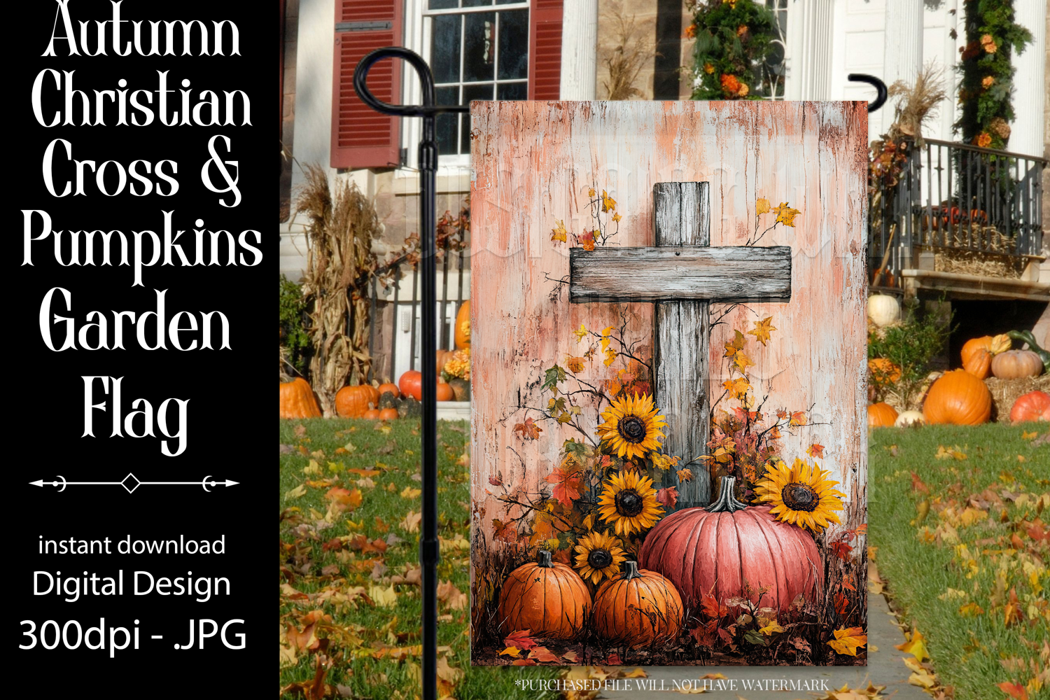 In this listing, you will find a unique autumn christian themed digital background for a 12x18 garden flag. This flag design is perfect for sublimating on garden flag blanks. This design is sure to add a touch of autumn style to any garden.